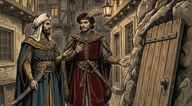 Nichts geschah. Der Fremde kratzte sich am Turban. „Manchmal hakt die Tür wegen lokaler Dialekte.“