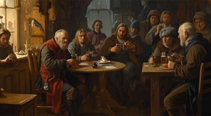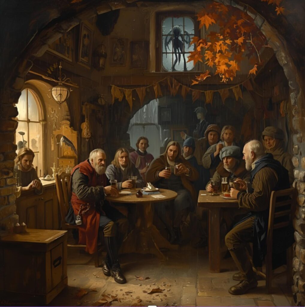 Ein schauriges Geheul klingt in der Ferne, als sich die Tür zur Taverne „Zum letzten Schlock“ quälend quietschend öffnet und ein dunkel vermummter Gast eintritt. Draußen dämmert es bereits und im diesigen Licht sieht man sich knorrige Bäume im Wind hin und her schaukeln.In der Taverne knistert ein gemütliches Feuer und erleuchtet den Raum in einem schummrigen Licht. Plötzlich hört man ein schnarriges Lachen von der Theke. Agga, die Wirtin grinst den neuen Gast an. „Willst´n letzten Schlock wohl trinken, was? Pass auf, dass der das nicht wirklich ist. Die Sodenwölfe sind heute wieder unterwegs und wer weiß, was für andere Gestalten sich noch in dem Wald herumtreiben. Bleib ma lieber was hier drinne.“ Dabei deutet sie auf die anderen Gäste, die an den Tischen sitzen. Es wird gewürfelt, gekakelt, gesungen und gelacht und keiner sorgt sich darum, was in der Schwärze der Nacht vor der Tür umherkreucht.